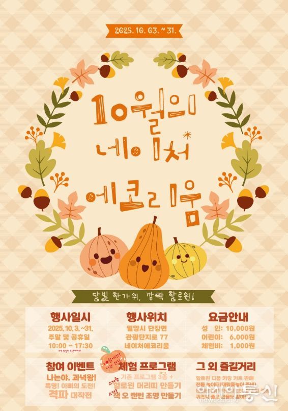 [아시아통신] 밀양 네이처 에코리움이 10월 문화의 달을 맞아 주말 및 공휴일에 온 가족이 함께 참여할 수 있는 특별 프로그램을 운영한다고 30일 밝혔다.