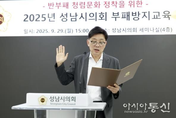 [아시아통신] 성남시의회는 29일 의회 4층 세미나실에서 전 의원을 대상으로 부패방지교육을 실시했다. 이번 교육은 지방의원에게도 적용되는 '공직자의 이해충돌방지법'의 취지를 되새기고, 사적 이해관계와 겸직 등과 관련한 사회적 요구에 적극 부응하기 위해 마련됐다.