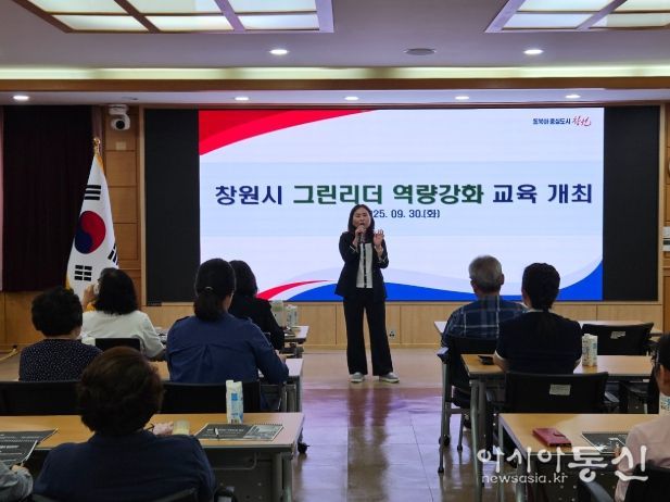 [아시아통신] 창원특례시는 30일 창원시청 제3회의실에서 창원시 그린리더협의회 회원을 대상으로 ‘역량강화 교육’을 실시하고, 시민참여를 유도하는 ‘기후행동 10가지 실천·홍보캠페인’을 개최했다.