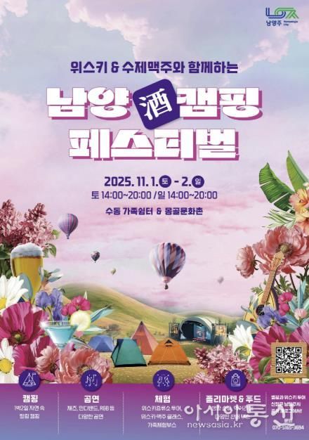 [아시아통신] 남양주시는 오는 11월 1일부터 2일까지 수동 가족쉼터와 몽골문화촌 일원에서 ‘남양酒 캠핑 페스티벌’을 개최한다.