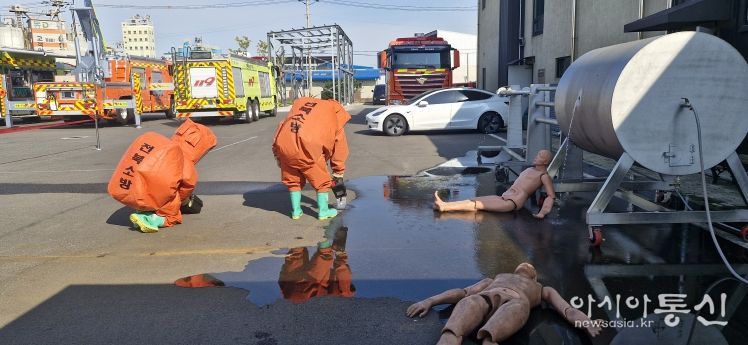 [아시아통신] 전북특별자치도소방본부는 지난 1일 119특수대응단 화학구조대 청사에서 유해화학물질 누출 사고 대응 역량 강화를 위한 합동훈련을 실시했다.