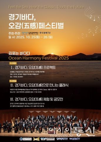 [아시아통신] (재)김포문화재단은 오는 10월 25일부터 26일까지 양일간 김포 아라마리나 문화광장에서 'Ocean Harmony Festival 2025, 경기바다 오감(五感) 페스티벌'을 개최한다고 밝혔다. 이번 행사는 한국경제TV 및 한경arteTV가 주관하고 경기관광공사가 후원한다.