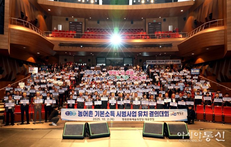 [아시아통신] 영광군은 지난 10월 2일 오후 2시, 영광문화예술의전당 대공연장에서 '농어촌기본소득 시범사업 유치 결의대회'를 성황리에 개최했다.