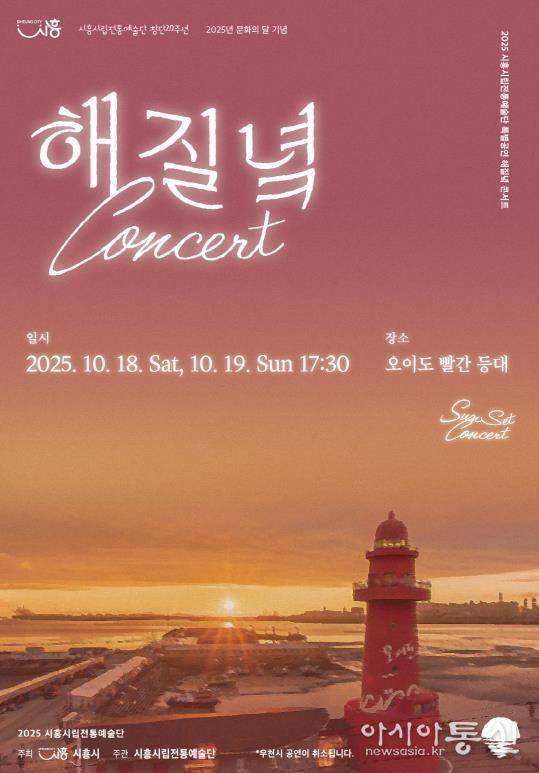 [아시아통신] 시흥시는 10월 18일부터 19일까지 이틀간 ‘오이도 빨강등대’에서 시립전통예술단의 ‘해질녘 콘서트’를 선보인다.