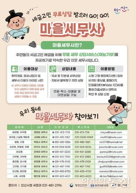 [아시아통신] 안산시는 올해 말까지 시민들에게 전문적인 세무 상담을 제공하기 위한 ‘제5기 마을세무사’ 제도를 운영한다고 10일 밝혔다.