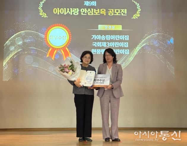 [아시아통신] 부산진구는 관내 국공립 가야송림어린이집이 어린이집안전공제회에서 주최한 제9회 ‘아이사랑 안심보육’ 숏츠 영상 공모전에서 최우수상(교육부장관상)을 수상했다고 밝혔다.