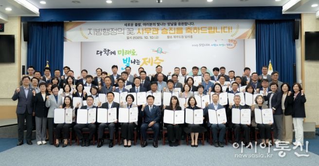 [아시아통신] 제주특별자치도는 10일 오전 도청 탐라홀에서 사무관 및 연구·지도관 승진자 50명에게 임용장을 수여했다.