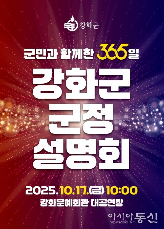 [아시아통신] 강화군은 오는 10월 17일 오전 10시 강화문예회관에서 “군민과 함께한 365일, 강화군 군정 설명회”를 개최한다.