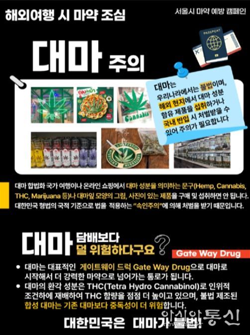 최근 많은 나라에서 대마를 합법화하면서 해외여행 중 대마를 접할 기회가 증가하고 있다. 특히 대마 성분이 함유된 젤리, 과자, 초콜릿 등은 일반 기호식품처럼 판매되고 있어 현지에선 제약 없이 구매가 가능하다. 하지만 귀국 후 소변·모발 검사에서 관련 성분이 검출될 경우 국내법에 따라 형사처벌을 받을 수 있다.