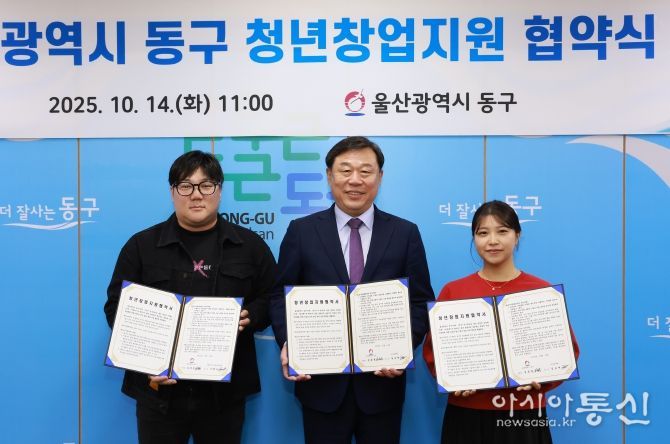 [아시아통신] 울산 동구는 10월 14일 오전 11시 동구청에서 ‘2025년 청년창업 Start Up' 선정자인 ’모아라면땅‘ 김보예 대표와 ’보컬라운지 실용음악학원‘ 이형도 대표를 대상으로 창업지원금 지원 협약식을 개최했다.