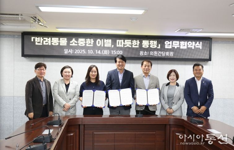 [아시아통신] 인천 서구는 14일 관내 동물장묘업체와 함께 ‘반려동물 소중한 이별, 따뜻한 동행’을 주제로 반려동물 장례문화 지원 업무협약을 체결했다. 이번 협약은 서구의회 의원연구단체인 서구반려동물정책연구회가 공동발의해 전국 최초로 제정한 ‘인천광역시 서구 반려동물 장례문화 지원 조례’를 근거로 진행됐다는 점에서 의미가 크다.