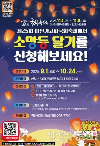 정양숙 문화관광체육국장은 “더 많은 시민들이 축제의 주인공으로 함께할 수 있도록 참여 기회를 확대하기 위해 신청기간을 연장했다”며 “시민 한 분 한 분의 소망이 모여 가을밤 마산의 하늘을 국화빛으로 물들이길 바란다”고 말했다.