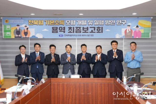 [아시아통신] 전북자치도의회 전북형 기본소득제도 연구회는 15일 전북자치도의회 세미나실에서 ‘전북형 기본소득 모형개발 및 실행방안 연구 용역' 최종보고회를 개최했다.
