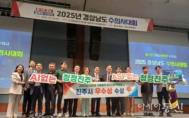 [아시아통신] 진주시가 지난 15일 창원컨벤션센터에서 개최된 ‘2025년 경상남도 수의사대회’에서 ‘가축방역 우수 기관상’을 수상했다.