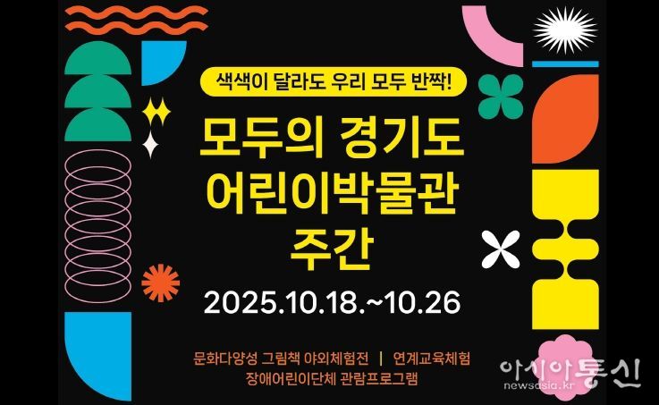 [아시아통신] 경기문화재단 경기도어린이박물관(관장 박균수)은 오는 10월 18일부터 10월 26일까지 문화다양성 행사 〈색색이 달라도 우리 모두 반짝! 모두의 경기도어린이박물관 주간〉을 운영한다. 본 행사는 《문화다양성 그림책 야외체험전》, 유아 및 초등 어린이를 위한 연계프로그램, 장애어린이단체 맞춤형으로 개발된 접근성 콘텐츠를 활용한 관람프로그램 시범운영 등 총 3종으로 구성되어 다양한 모습의 관람객을 만나게 된다.