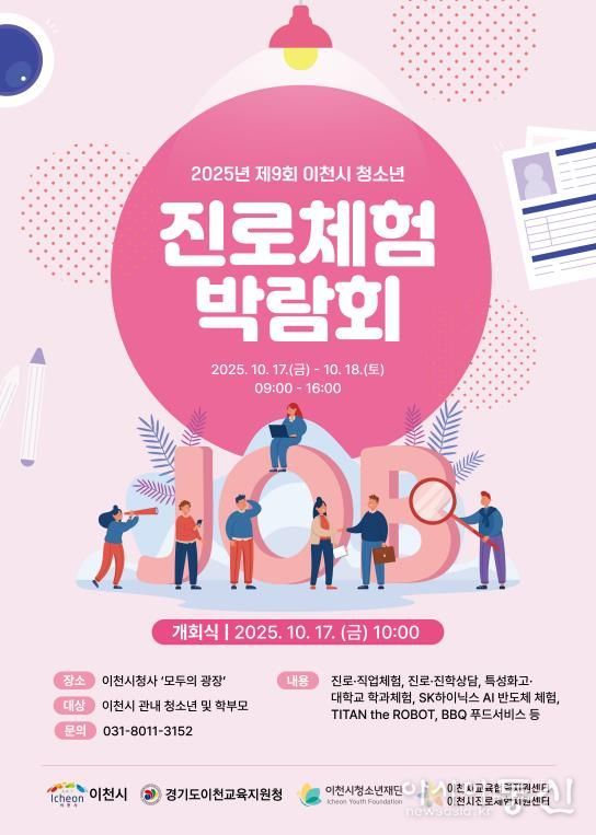 [아시아통신] 이천교육지원청은 10월 17일~18일 이틀간 이천시청 앞 광장 일대에서 이천시 청소년 진로체험박람회를 개최한다.