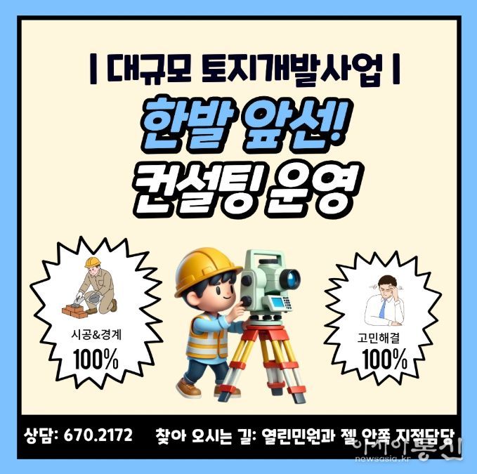 [아시아통신] 고성군은 대규모 토지개발사업의 시행신고 단계부터 지적공부정리 완료 단계까지 한발 앞선 맞춤형 컨설팅을 운영하여 사업시행자와 측량수행자, 담당자가 효과적으로 각자의 업무를 수행할 수 있도록 지원하고 있다.