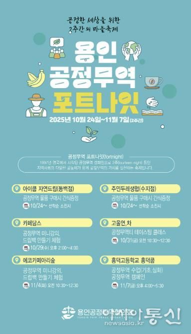 [아시아통신] 용인특례시와 용인공정무역협의회는 10월 24일부터 11월 7일까지 2주간 용인시 공정무역 포트나잇 축제를 개최한다.