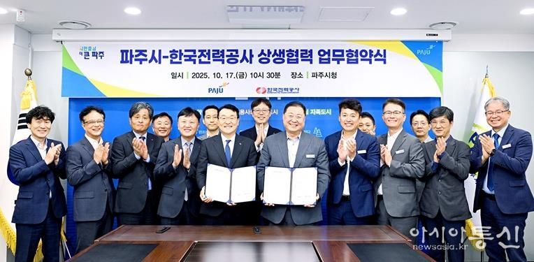 [아시아통신] 파주시와 한국전력공사는 지난 17일, 대규모 개발사업의 성공적인 추진과 안정적인 전력 공급을 위한 상생 협력 업무협약을 체결했다고 밝혔다.