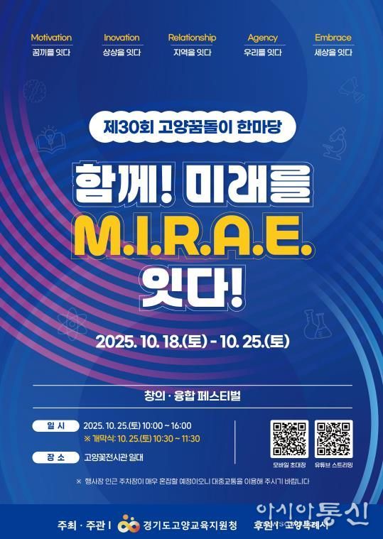 [아시아통신] 경기도고양교육지원청은 오는 10월 25일 오전 10시부터 오후 4시까지 고양꽃전시장 일대에서 ‘제30회 고양꿈돌이한마당 창의융합 페스티벌’을 개최한다.
