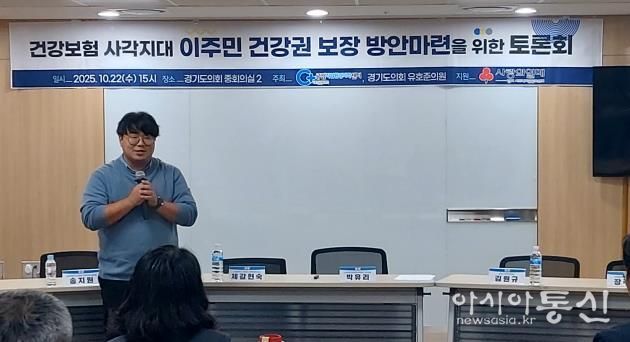 [아시아통신] 경기도의회 여성가족평생교육위원회 유호준 의원(남양주 다산·양정)은 10월 22일 오후 3시, 경기도의회 중회의실에서 열린 '건강보험 사각지대 이주민 건강권 보장 방안 마련을 위한 토론회'를 공동주최하며, 미등록 이주민의 건강권 보장을 위한 공공의 책임 강화 필요성을 강조했다.