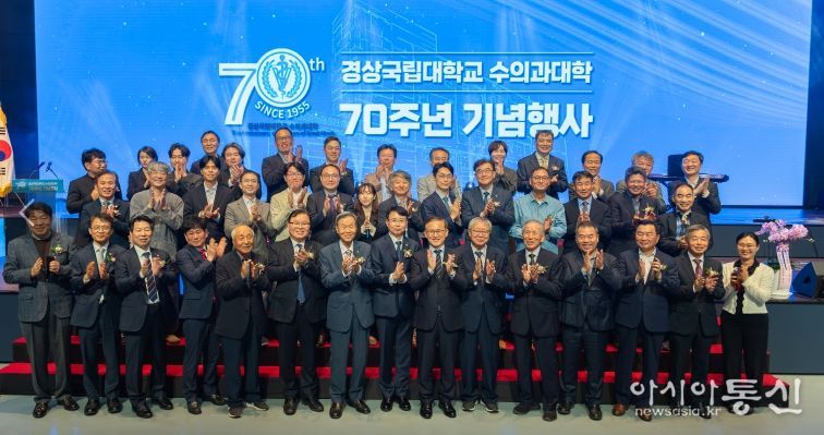 [아시아통신] 경상국립대학교 수의과대학은 설립 70주년을 맞이하여 70년 개척의 역사를 바탕으로 미래 100년을 향한 새로운 비상을 기념하기 위해, 10월 23일 오후 5시 칠암캠퍼스 100주년 기념관에서 ‘70년 개척의 자부심, 100년을 향한 새로운 비상’이라는 슬로건으로 ‘경상국립대학교 수의과대학 70주년 기념행사’를 개최했다.