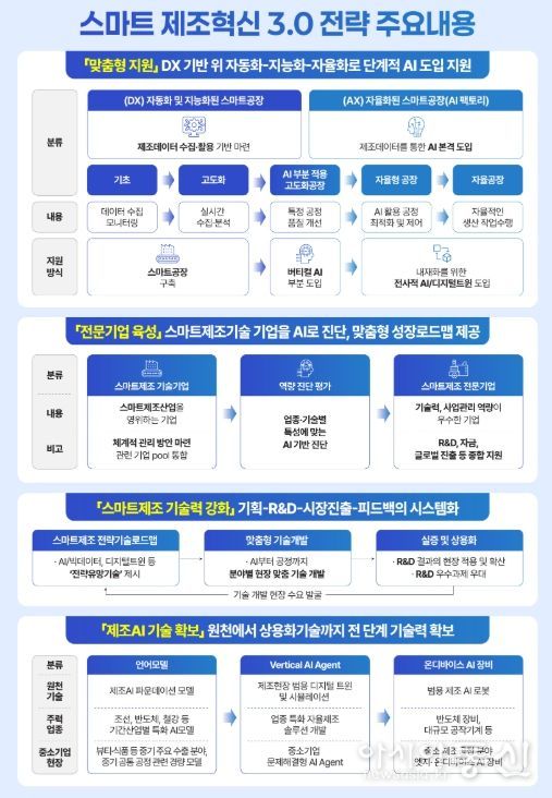 이에, 중기부는 제조기업과 기술기업 간의 선순환적인 스마트제조 생태계를 조성하여 국내 제조업의 근간인 중소 제조기업이 경쟁력을 확보할 수 있도록 'AI 기반 스마트제조혁신 3.0 전략'을 발표했다.
