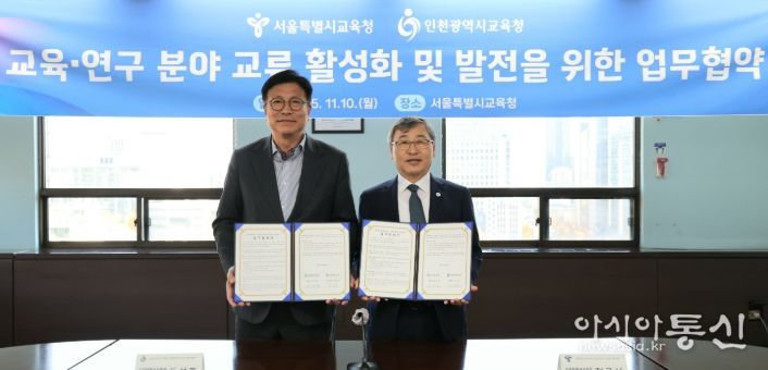 [아시아통신] 인천광역시교육청은 10일 서울특별시교육청과 함께 읽걷쓰 교육과 심층 쟁점 독서토론 기반의 교육 혁신 및 교육·연구 교류 활성화를 위한 업무협약을 체결했다.