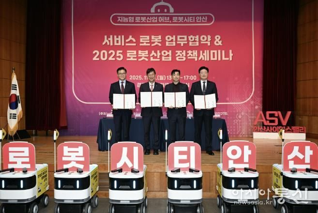 [아시아통신] 안산시는 지난 10일 (재)경기테크노파크 다목적실에서 관내 기업들과 ‘서비스로봇 업무협약·안산시 로봇산업 정책세미나’를 개최하고, 국내 최초로 캠퍼스형 자율주행 배달로봇 ‘개미’를 도입한다고 11일 밝혔다.