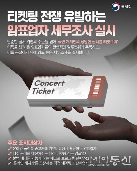 [아시아통신] 단순한 질서 위반의 수준을 넘어 '국민 개개인의 정당한 권리를 빼앗으며' 이득을 챙겨 온 암표업자들의 관행적인 탈루행위에 주목하고, 이를 근절하기 위해 강도 높은 세무조사를 실시합니다.