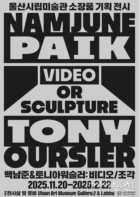 울산시립미술관은 오는 11월 20일부터 내년 2월 22일까지 2025년 하반기 소장품 기획전시 《백남준 · 토니 아워슬러: 비디오/조각》을 개최한다고 밝혔다.