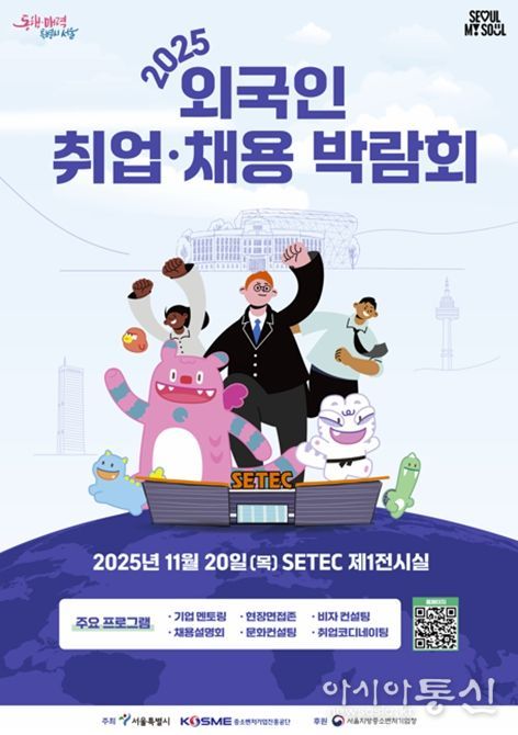 [아시아통신] 서울시와 중소벤처기업진흥공단이 공동으로 주최하고 서울지방중소벤처기업청이 후원하는 '2025 외국인 취업·채용 박람회'가 11월 20일 오전 10시 세텍(SETEC) 제1관에서 열렸다.