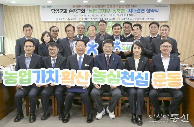 [아시아통신] 순창군과 담양군의 양 지역 농·축협장이 한자리에 모여 상호 농업발전과 상생협력을 다짐하는 자매결연 협약을 맺어 눈길을 끌었다.