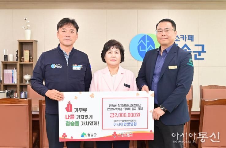 [아시아통신] 청송군은 지난 21일 (재)한국수성사회의학연구소 이시아한방병원이 청송군을 방문해 관내 의료 취약계층을 위한 성금 200만 원을 기탁했다고 밝혔다.
