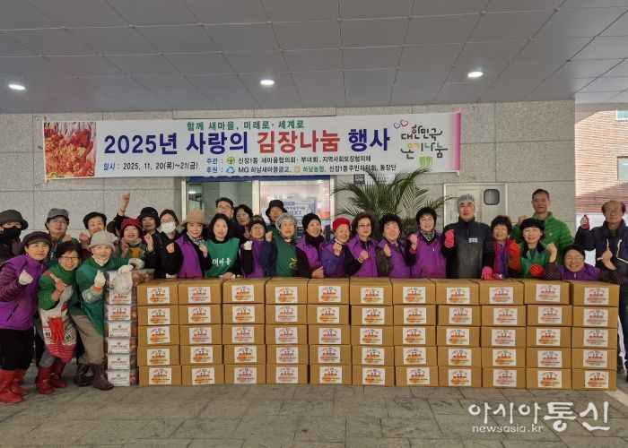 [아시아통신] 하남시 신장1동 새마을협의회·부녀회와 지역사회보장협의체는 지난 11월 20일과 21일 이틀간 신장1동 행정복지센터에서 ‘사랑의 김장나눔’ 행사를 열고, 정성껏 담근 김장김치 450포기를 관내 취약계층 150가구에 전달했다고 밝혔다.