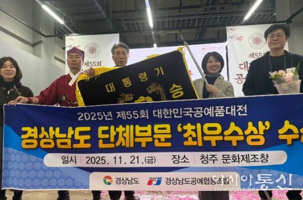 [아시아통신] 경상남도는 21일 청주시 문화제조창에서 열린 ‘제55회 대한민국 공예품대전 시상식’에서 3년 연속 단체 최우수상(국가유산청장상)을 수상하고 대통령기를 수여받았다고 밝혔다.