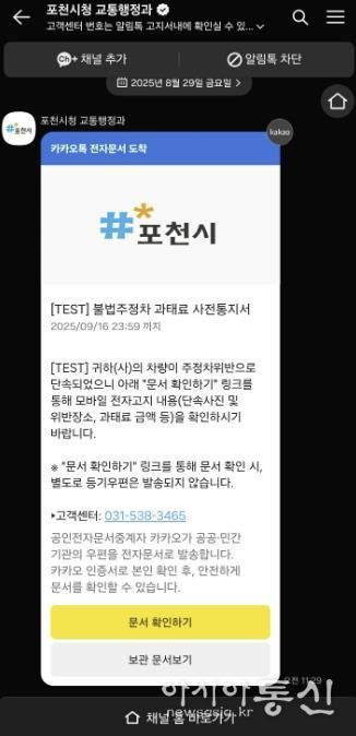 [아시아통신] 포천시는 2026년부터 불법주정차 과태료 사전통지서를 카카오톡 기반 전자고지 방식으로 전면 전환한다.
