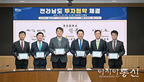 [아시아통신] 여수시는 지난 26일 전라남도 동부지역본부 나철실에서 전라남도와 여수그린에너지㈜, ㈜한화 글로벌부문, ㈜LX MMA 등과 총 1조 2,441억 원 규모의 투자협약을 체결했다고 밝혔다.