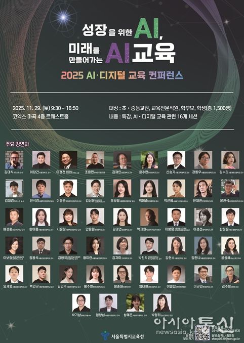 [아시아통신] 서울특별시교육청(교육감 정근식)은 AI 시대 학습자의 성장을 체계적으로 지원하고, 공교육이 나아가야 할 미래교육의 방향을 모색하기 위해 '2025 AI·디지털 교육 컨퍼런스'를 11월 29일 마곡 코엑스에서 개최한다.