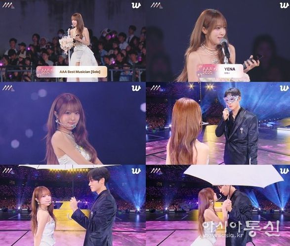 [아시아통신] 가수 최예나(YENA)가 'AAA' 베스트 뮤지션 상을 수상, 추영우와 설렘 퍼포먼스로 존재감을 드러냈다.