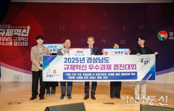 [아시아통신] 경상남도는 19일 도청 본관 4층 대회의실에서 ‘2025 경상남도 규제혁신 우수사례 경진대회’를 개최했다. 이번 경진대회는 규제혁신을 통해 도민이 체감할 수 있는 변화를 이끌어낸 우수사례를 공유하고, 향후 추진 방향을 모색하기 위해 마련됐다.