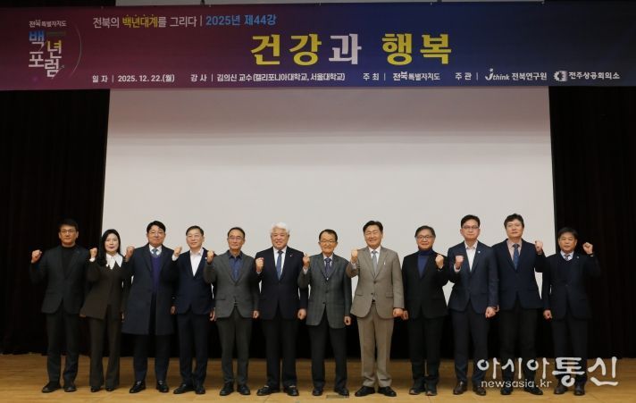 전북연구원은 22일 오전 8시, 전북특별자치도청 4층 대회의실에서 세계적인 암 치료 전문가 김의신 박사를 초청해 ‘건강과 행복’을 주제로 '전북 백년포럼'을 개최했다.