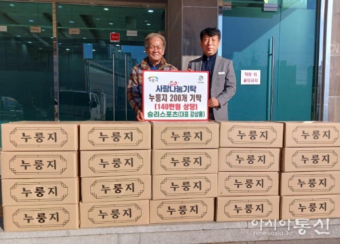 [아시아통신] 장호원읍은 지난 22일, 승리스포츠(대표 강상율)가 누룽지 200개를 기탁했다고 밝혔다.