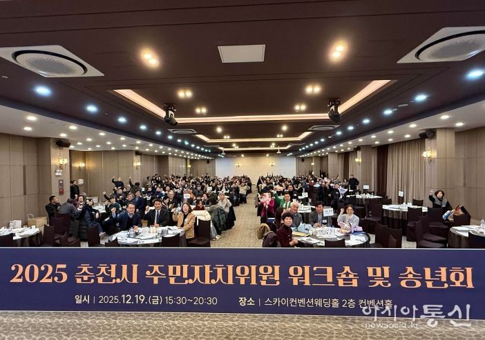 [아시아통신] 춘천시 주민자치협의회(회장 엄상필)는 한 해 주민자치 활동을 되돌아보고 새해 도약을 다짐하는 ‘2025 춘천시 주민자치위원 워크숍 및 송년회’를 개최했다.