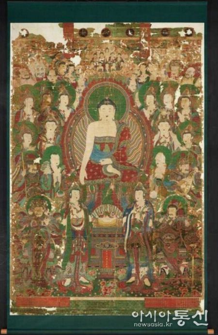 [아시아통신] 국가유산청은 현재 전하는 경수연도(장수 축하·기원 잔치인 경수연을 그린 그림) 중 유일한 원본인 '신중엄경수도첩'을 비롯해 '영산회상도', '묘법연화경 권3', '구례 화엄사 동종', '고려 수월관음보살도', '‘영축사’명 영산회상도'까지 총 6건을 국가지정문화유산 보물로 각각 지정했다.