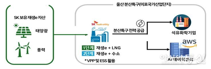 지역 발전사인 에스케이 엠유(SK MU)가 전력 직접거래를 통해 울산 미포국가산업단지 내 에스케이(SK)-아마존 데이터센터, 석유화학 기업 등에 저가 전력을 공급할 계획이다. 정부의 재생에너지 정책 기조에 맞춰 단계적으로 재생에너지와 친환경(그린)수소 기반의 무탄소 전력 공급도 확대할 방침이다.