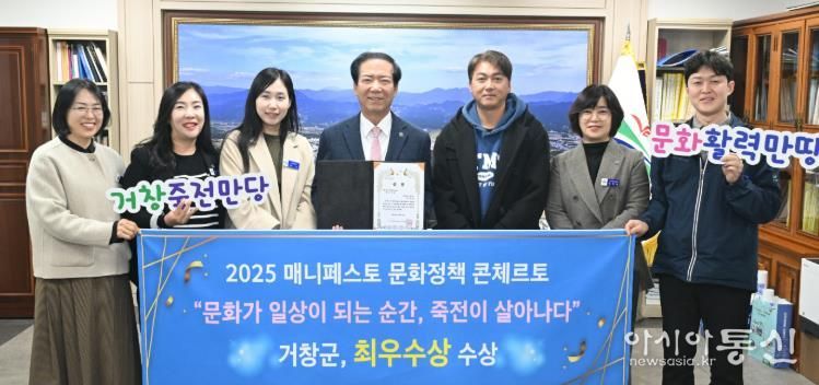 [아시아통신] 거창군은 강원특별자치도 원주시 상지대학교에서 개최한 ‘2025 전국 기초단체장 매니페스토 문화정책 콘체르토(Concerto)’ 대회에서 문화기반 도시활력분야 ‘최우수상’을 수상했다고 26일 밝혔다.
