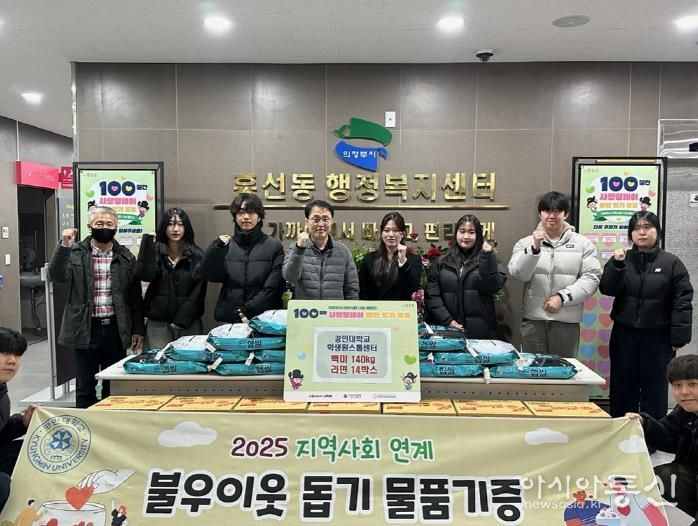 [아시아통신] 의정부시 흥선동행정복지센터는 12월 23일 경민대학교 학생원스톱센터가 ‘100일간 사랑릴레이 배턴 잇기’에 동참하해 백미 140kg, 라면 14상자를 기탁했다고 밝혔다.