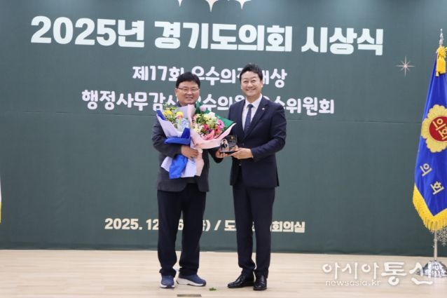 [아시아통신] 경기도의회 교육기획위원회 이택수 의원(국민의힘, 고양8)과 성기황 의원(더불어민주당, 군포2)이 26일 열린 2025년 경기도의회 시상식에서 ‘2025년 행정사무감사 우수위원’으로 선정됐다.