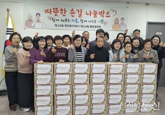 [아시아통신] 고양특례시 덕양구 행신4동은 지난 29일, 통장들이 매달 자발적으로 모은 기부금으로 마련한 ‘따뜻한 손길 나눔박스’를 독거어르신에게 전달했다고 밝혔다.
